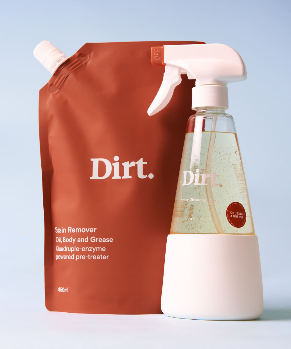 Take stain removal to the next level with our Oil, Body and Grease Stain Remover Starter Pack. Formulated with the expert power of four organic enzymes to deliver a powerful attack on any stain, especially those complex stains that are protein and oil- based. This pack contains a full Dispenser Bottle and a Stain Remover Refill Pack.