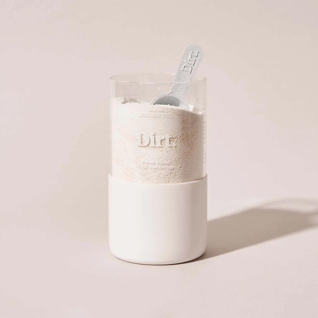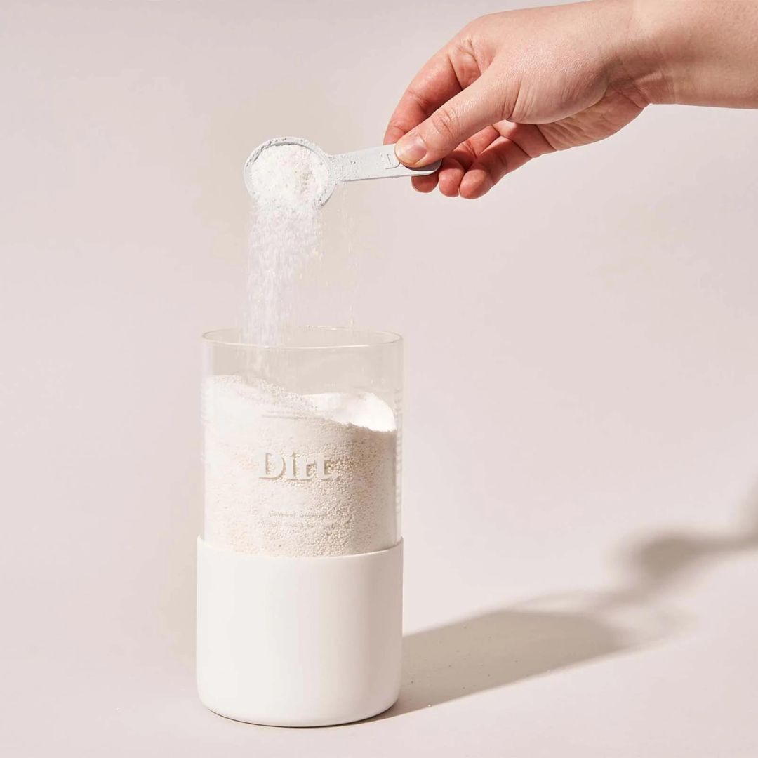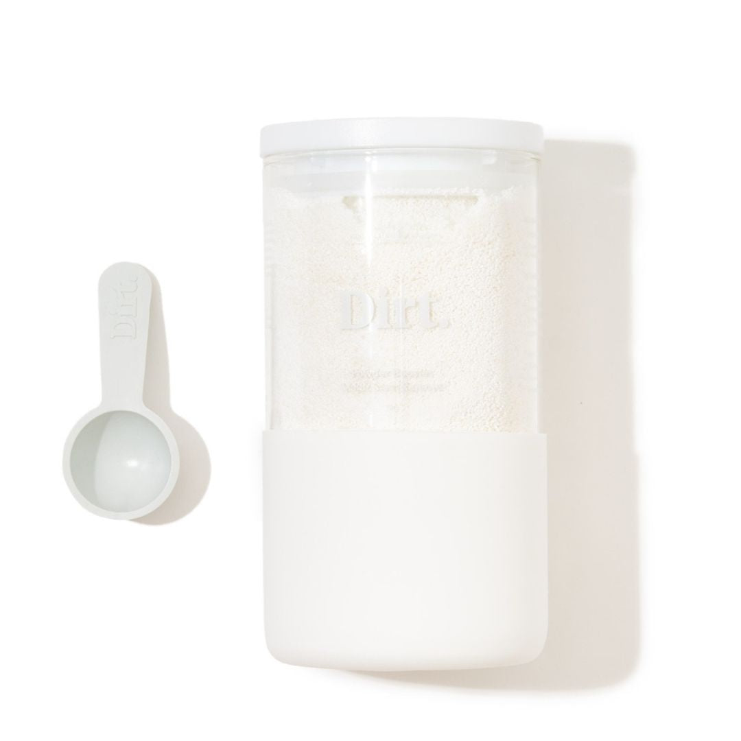 Our Dispenser Jar is made from glass with a silicone sleeve for grip and protection. Designed to be refilled infinitely, it comes loaded with 66 scoops for brightening, whitening and major stain removal.