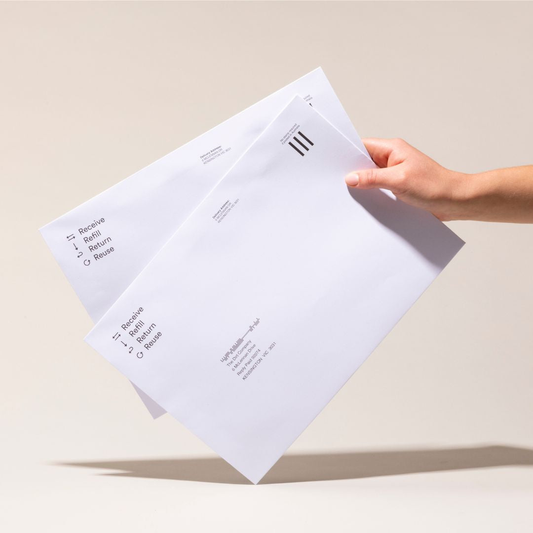 - You can fit 8-9 refill packs, or 1-2 bulk refill packs in our reply paid envelopes.