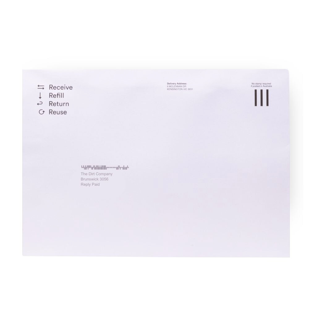 - Ensure the refill packs have their lids on. While Aus Post love Dirt (obviously), they don’t like it on everyone else’s mail!