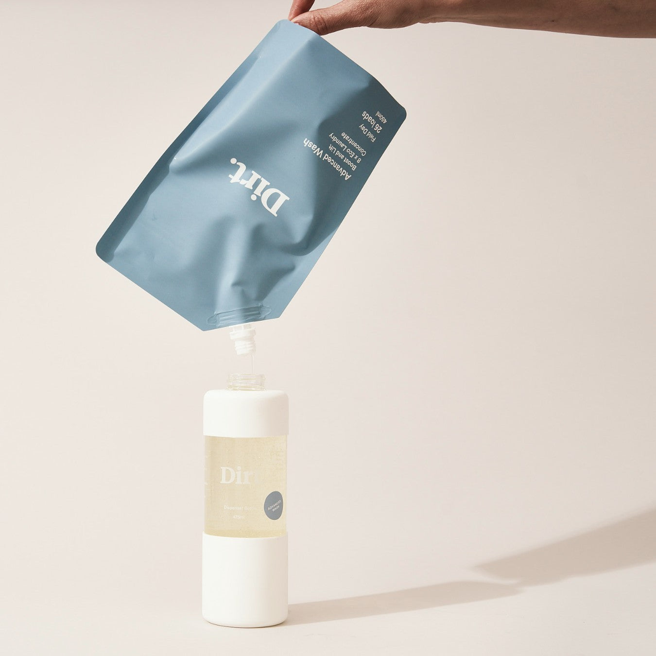 Designed for odour control, our Advanced Wash prevents odour growth and leaves your clothes with a green, clean and fresh scent. The Starter Pack (53 loads) comes with a full Dispenser Bottle and a Refill Pack when you need to top up.